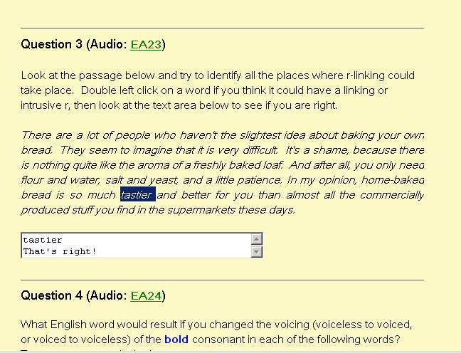 This paper reports the development and evaluation of an online distance course making available most of the elements of traditional on-campus phonetic training within a Virtual Learning Environment (VLE). Issues associated with the use of phonetic symbols in the teaching materials and communication tools of a VLE are addressed. An outline is presented of an up-to-date, research-driven syllabus for a distance course in English phonetics with associated exercises, ear-training and assessments. An eight-week pilot of the new course attracted 25 students across five continents, indicating a healthy global market for a course of this type. Retention rate to final assessment was 64%; an evaluation questionnaire assessing satisfaction on a five-point scale (1=best) showed an average score of 1.34.