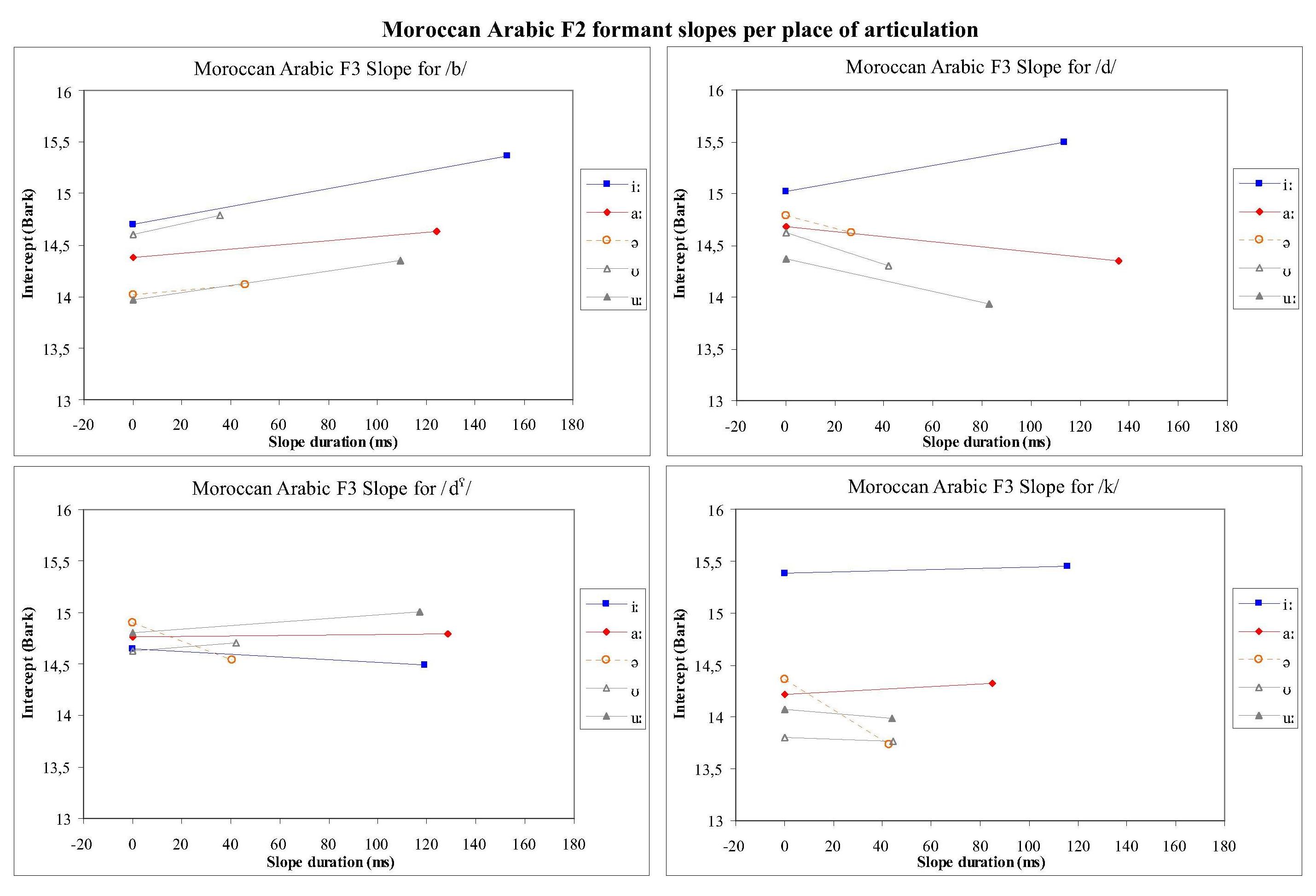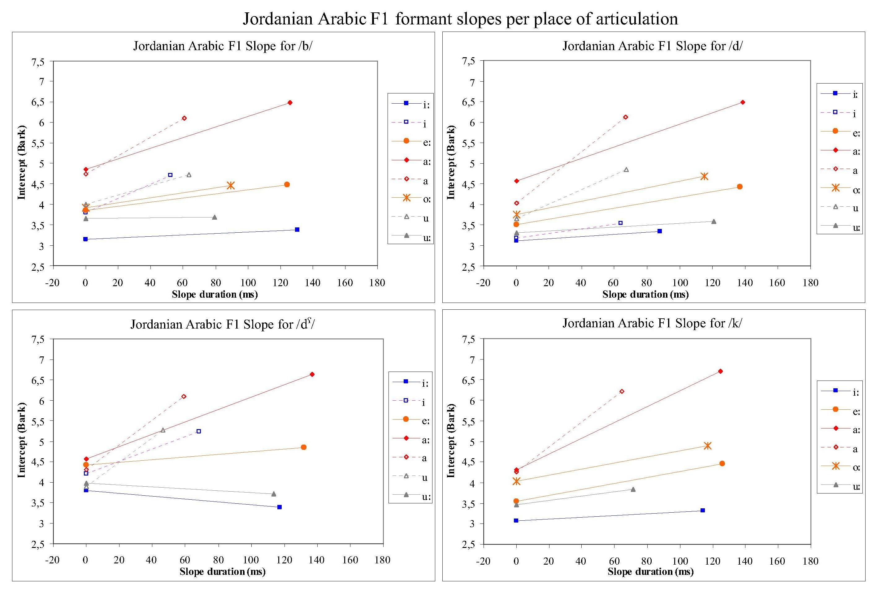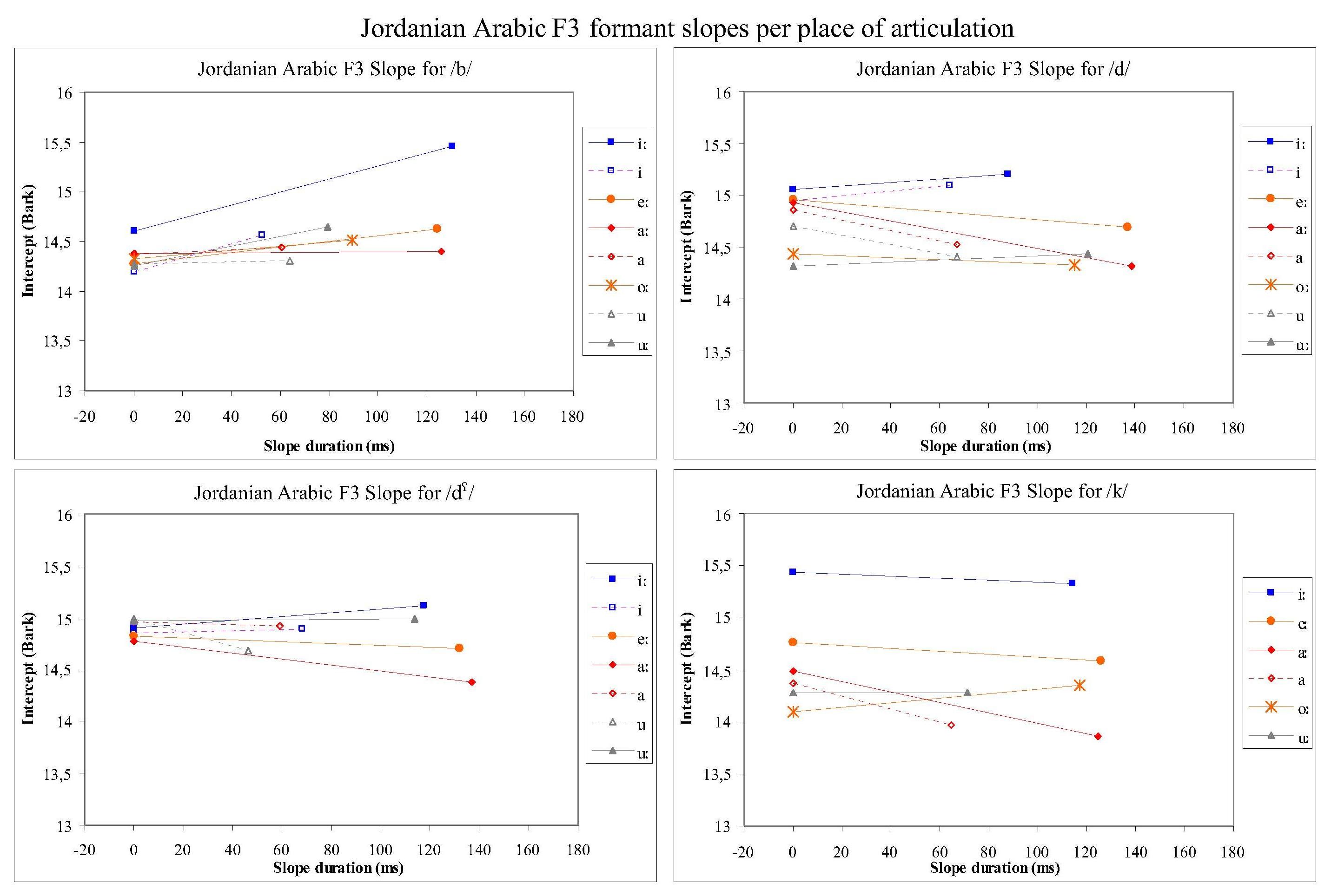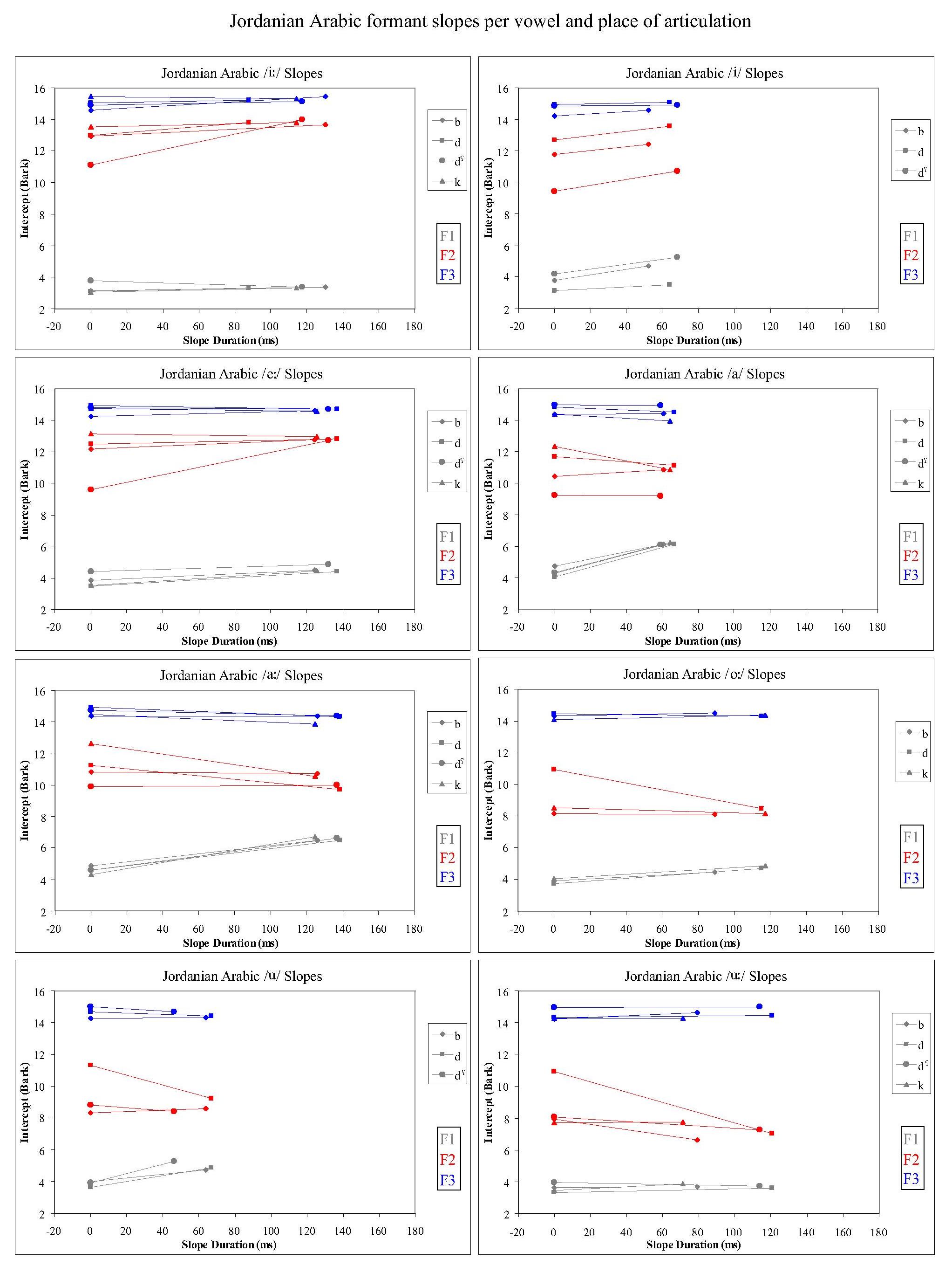 The aim of this paper is to examine the role of dynamic cues (i.e. formant slopes obtained from a linear regression analysis) in comparison with static one (i.e. vowel targets) in the classification of Jordanian and Moroccan vowels, using Discriminant Analysis. 10 speakers per dialect produced a list of vowels in C1VC2, C1VC2V, or C1VC2VC words, where C1 and C2 were either /b/, /d/, /d/(pharyngealized) or /k/, and V, each vowel. Results show the possibility of vowel separation between both dialects for a specific consonantal environment. Using dynamic cues improves the correct classification rates of about 5% for Moroccan Arabic and 13% for Jordanian Arabic.
