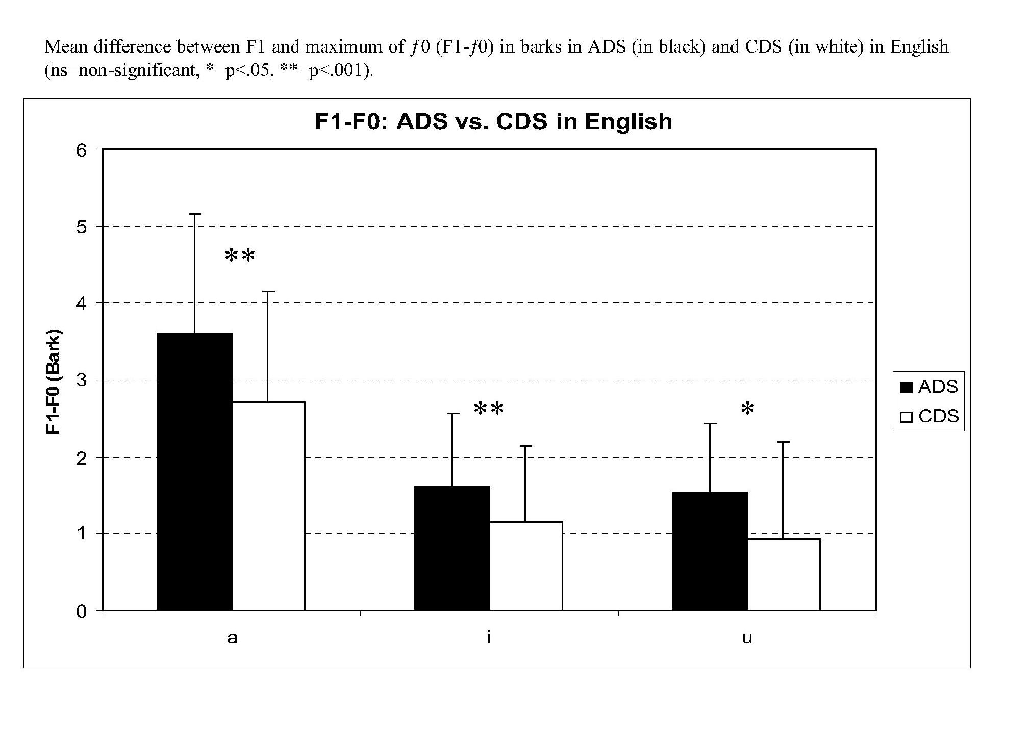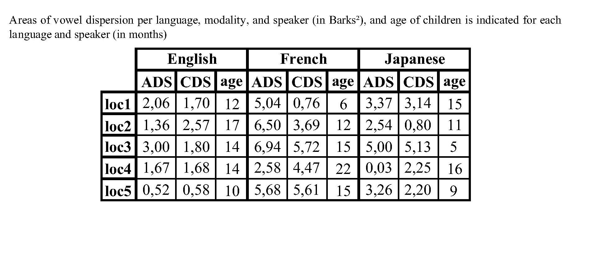 This research investigated the role of child-directed speech in the acquisition of vowel systems in a cross-linguistic perspective. In order to determine if vocalic systems are extended in child-directed speech and if this extension varies cross-linguistically, child-directed speech was compared to adult-directed speech in three different languages, French, English and Japanese. The same short story was successively read by mothers to their infant and to an adult (5 mother-infant dyads per language). The acoustic analyses reveal a downward shift of the vowel triangle on the high-low dimension of vowel space (F1). In the three languages, mothers tend to produce more opened vowels in CDS than in ADS.